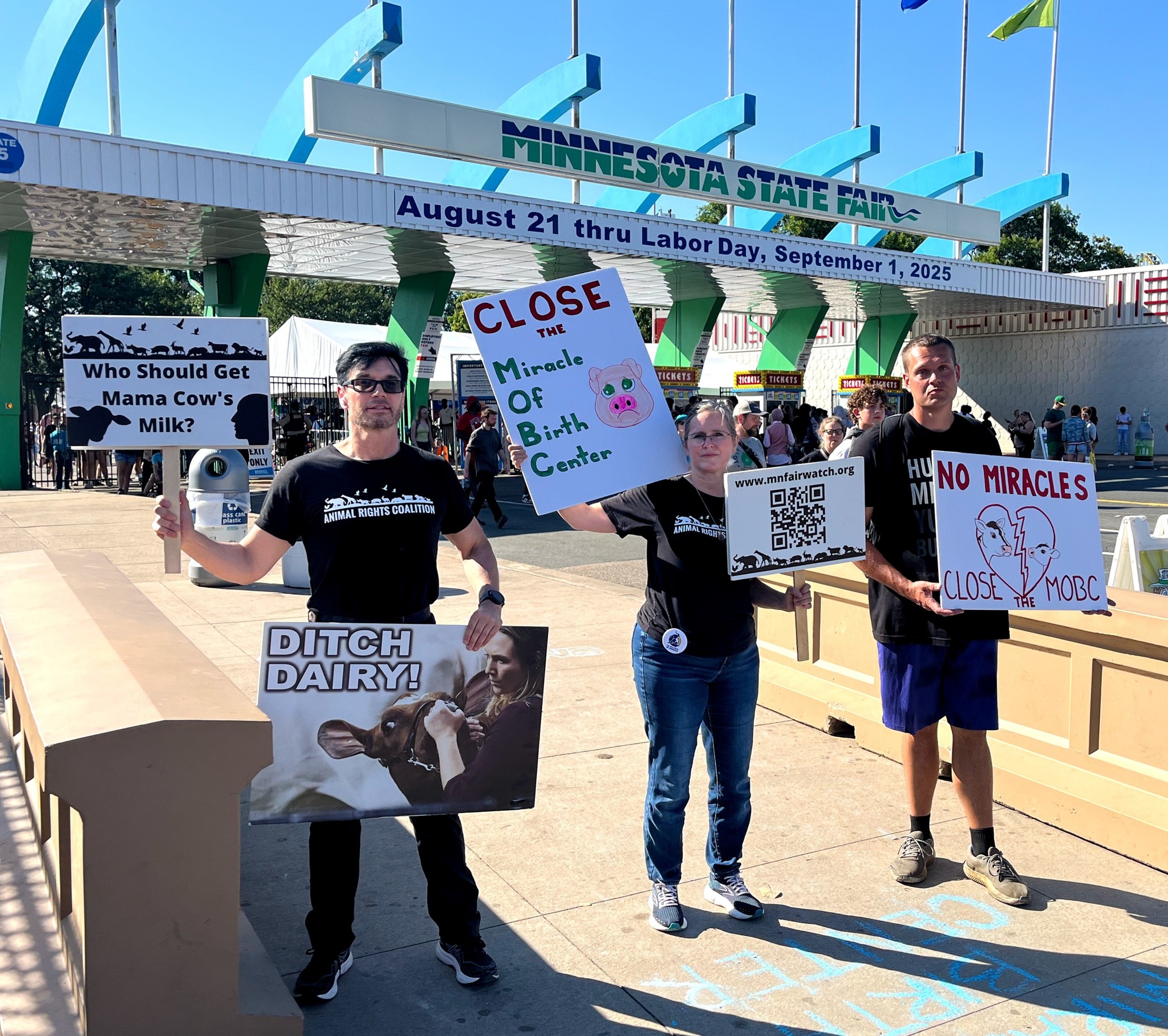 This yearβs lineup includes a frog (dissection), fox (fur industry), pig (Animal Ag/State Fair), dog (Minnesotan's Exposing the Pet Trade), cow (Dairy Industry/State Fair), elephant (circus/Ren Fest), and rooster (Animal Ag/State Fair).